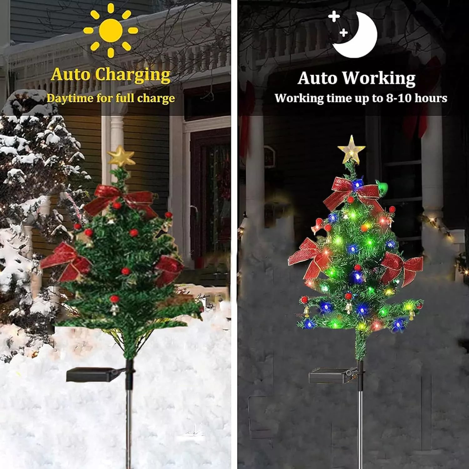 The outdoor solar garden lights with IP43 waterproof feature, even in bad weather work well and long lasting. The Xmas tree is solar energy powered, and upgraded solar panel,they can convert sun energy faster and more efficiently.